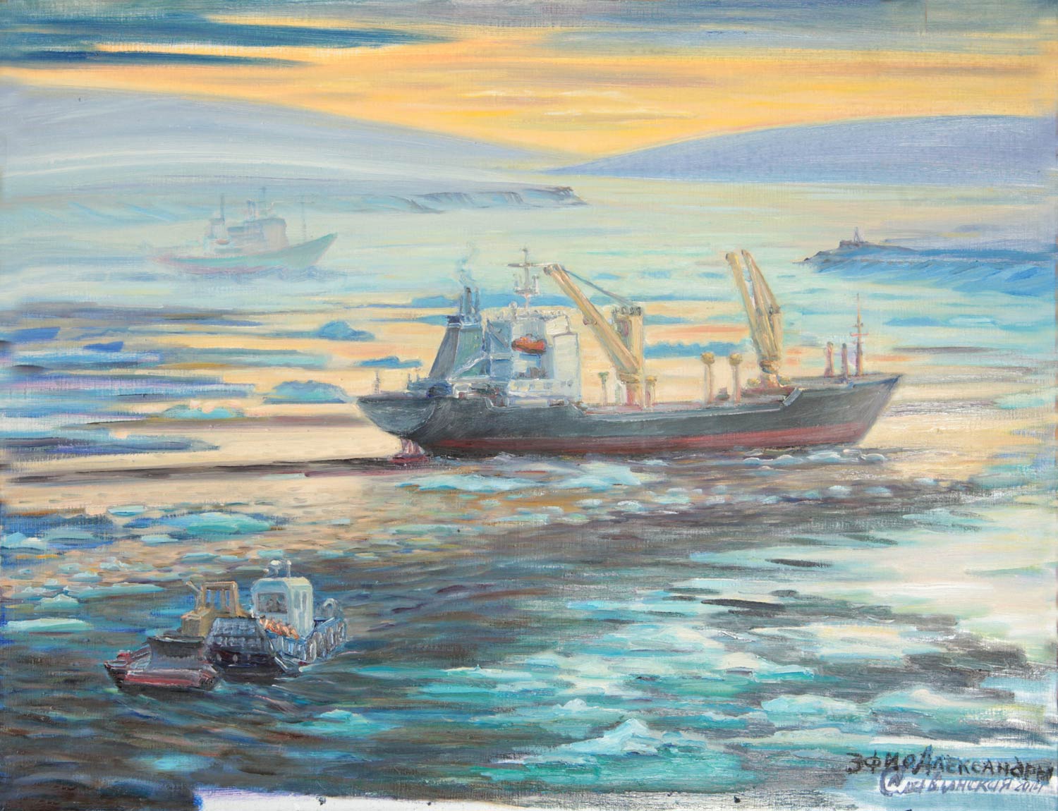 Monatelang war Lilia Slavinskaja auf Expedition in verschiedenen Erdteilen, wo sie Fotografien, Gemälde, Grafiken, Aquarells und Zeichnungen anfertigte. „Es ist interessant, zwei Pole der Erde zu vergleichen“, sagt Lilia Petrowna über ihre Reise in die Arktik und Antarktik. Deswegen sei der Traum über die Arktis „unbekannt, verlockend und zärtlich“.